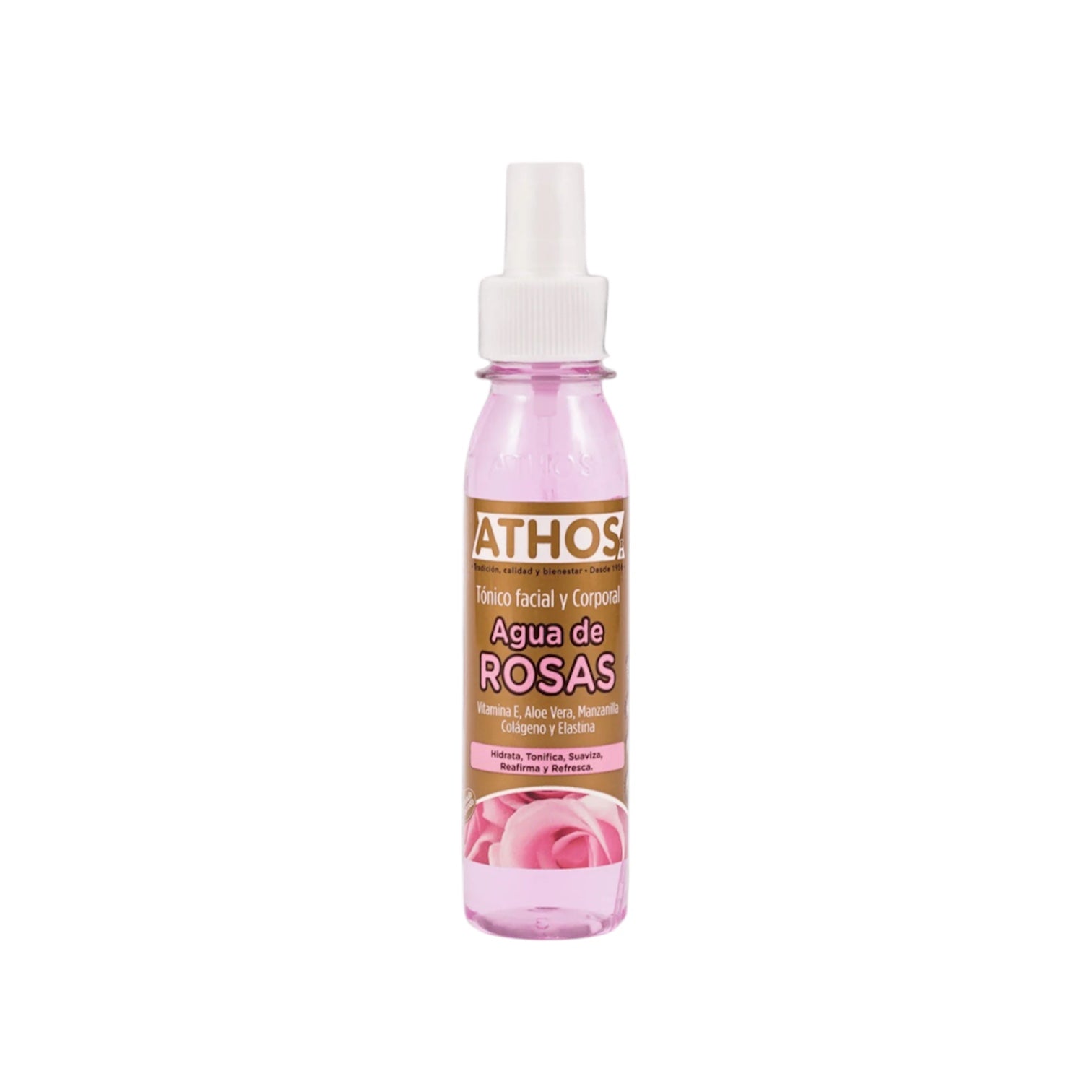 Tónico facial y corporal. Los beneficios del agua de rosas para la cara son: hidratante, tonificante, suavizante y reafirmante para la piel. Ideal para utilizar en las mañana y en la noches antes y después del maquillaje y afeitada. SIN ALCOHOL. SIN PARABENOS. Contiene: Vitamina E Aloe Vera Manzanilla Colágeno.