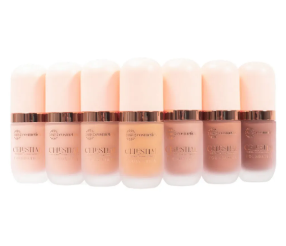 Luce una piel de porcelana, con nuestras bases celestial, su cobertura es alta, te brinda un acabado semi/mate, es cremosa y suave al aplicar. Vienen 7 tonos desde el más claro hasta el más profundo, ideales para lograr un acabado radiante en tu piel, empareja, cubre imperfecciones y unifica