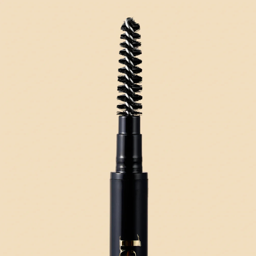 Lápiz para cejas 2 en 1 combina una mina retráctil ultra precisa y un spoolie integrado para peinar y difuminar. Su diseño permite crear trazos finísimos que imitan el vello natural, logrando un efecto pelo a pelo impecable y de larga duración. Además, es resistente al agua, ideal para que tus cejas se mantengan perfectas todo el día.
