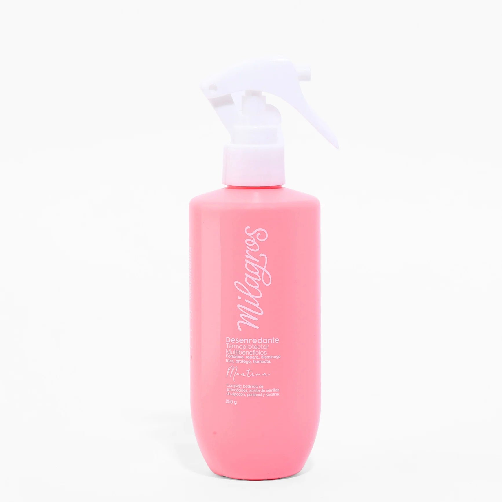 Protege tu cabello de temperaturas de hasta 230°C que pueden causar resequedad y daño con nuestro desenredante y termoprotector para el cabello. El Desenredante Termoprotector Multibeneficios mantiene la hidratación natural de cada hebra, desenredando 16 veces más fácil el cabello húmedo y 11 veces más el seco mientras reduce el frizz.