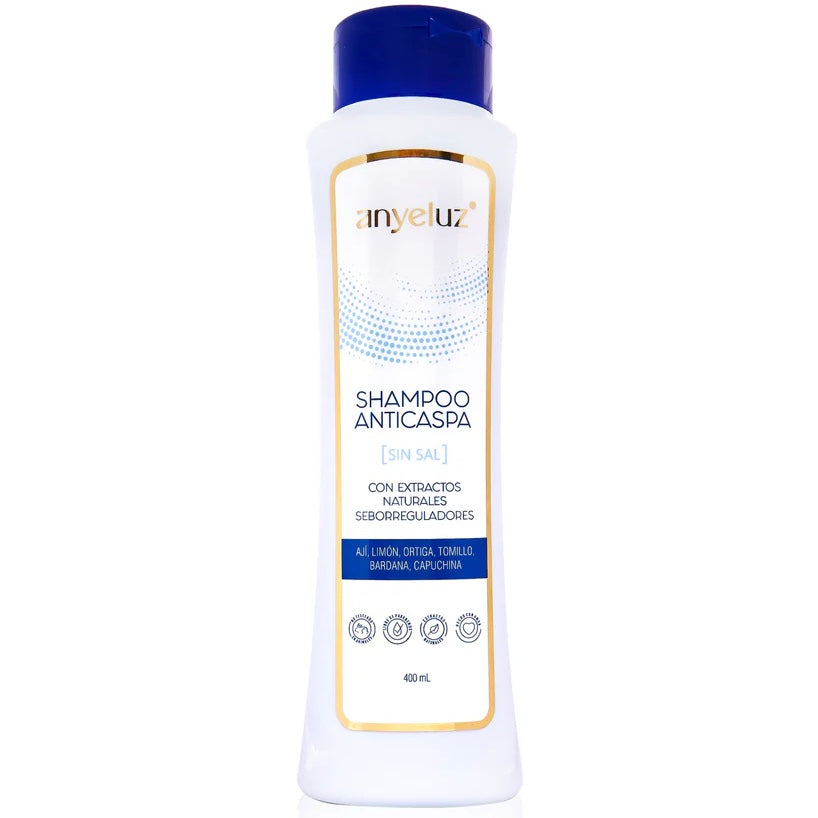 Una fórmula única para el tratamiento de la caspa y estados descamativos del cuero cabelludo la encuentras en el SHAMPOO ANTICASPA de Anyeluz, completamente sin sal con una composición a base de extractos naturales como el extracto de ají, limón, ortiga y tomillo junto con el Piritionato de Zinc, reducen la descamación, hidratando y protegiendo el cabello y el cuero cabelludo. Se puede usar en niños.