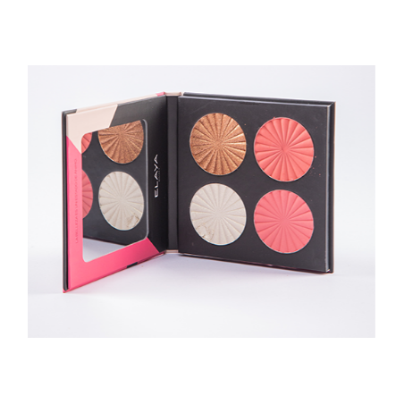 Paleta de rubor y contorno en polvo incluye 2 tonos para resaltar, definir y contornear el rostro y 2 tonos que añaden un toque de color y dimensión.